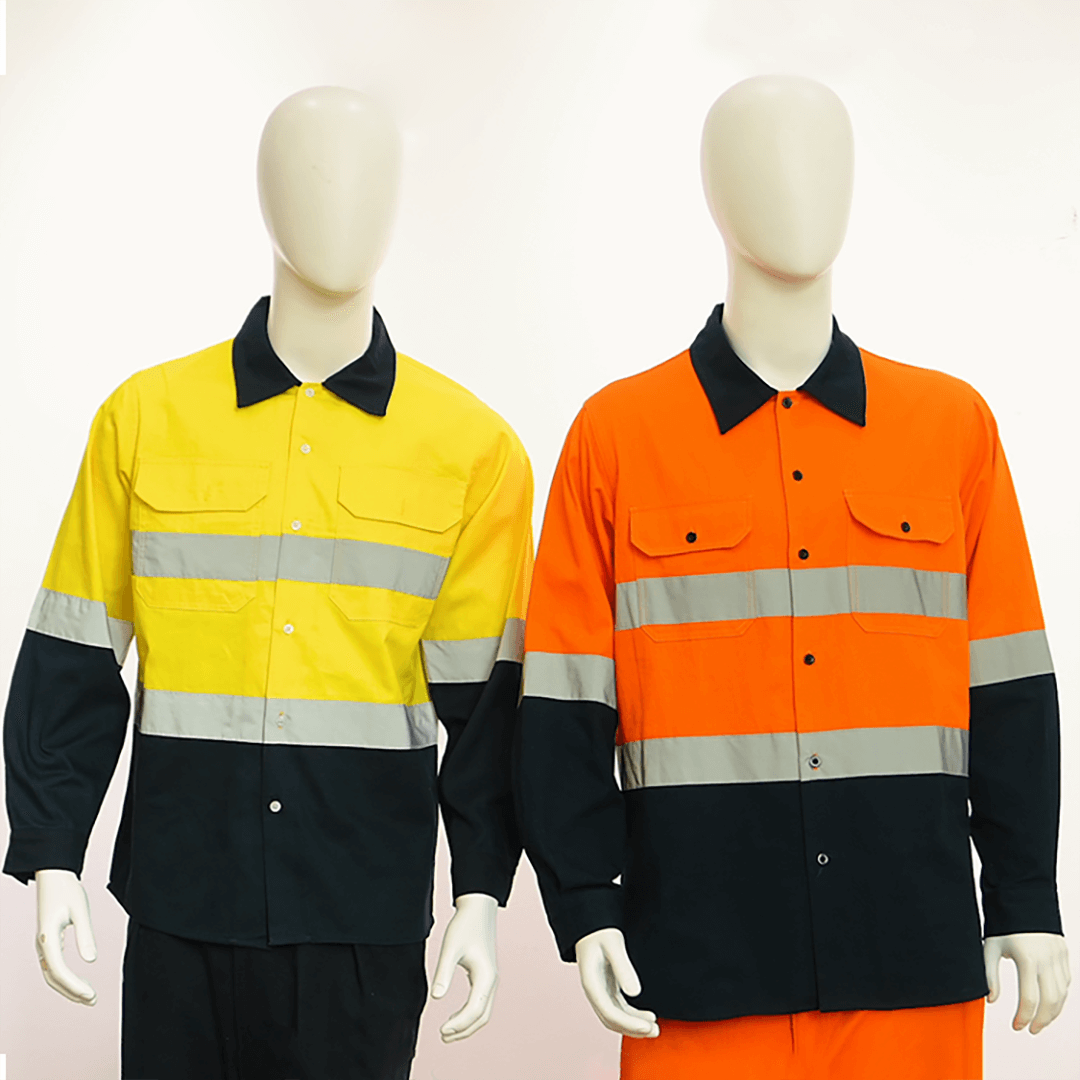 N20471 100% Cotton Construction Mining High Visibility Workwear Custom Logo Reflective Hi Vis Work Shirts